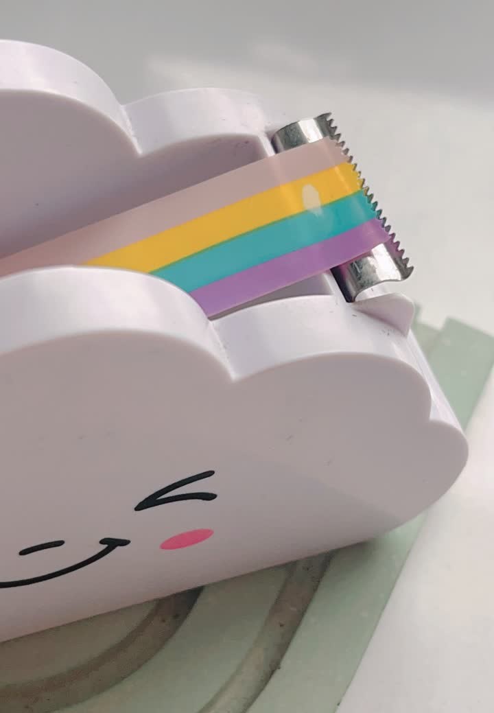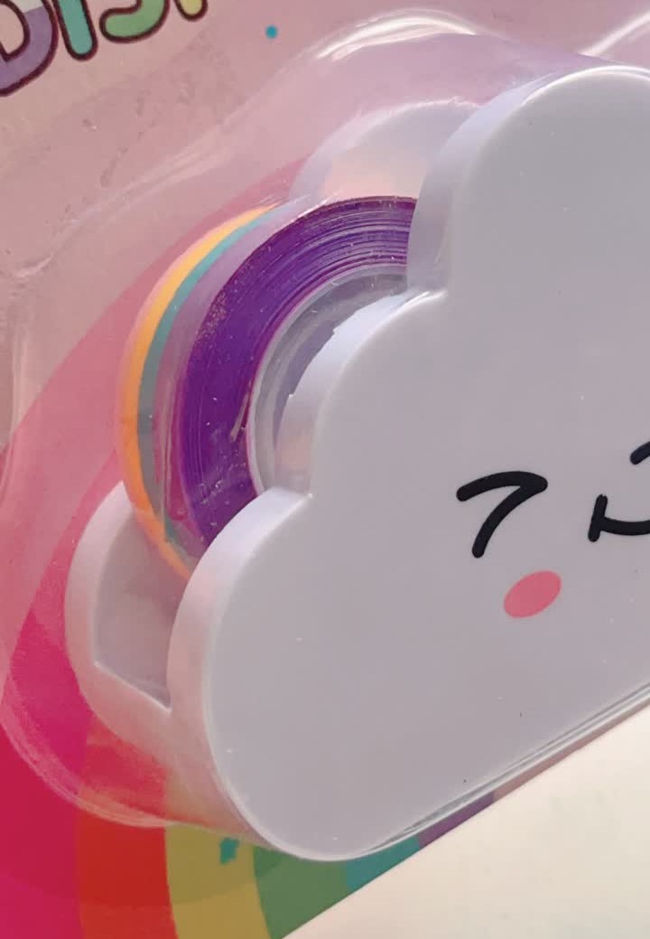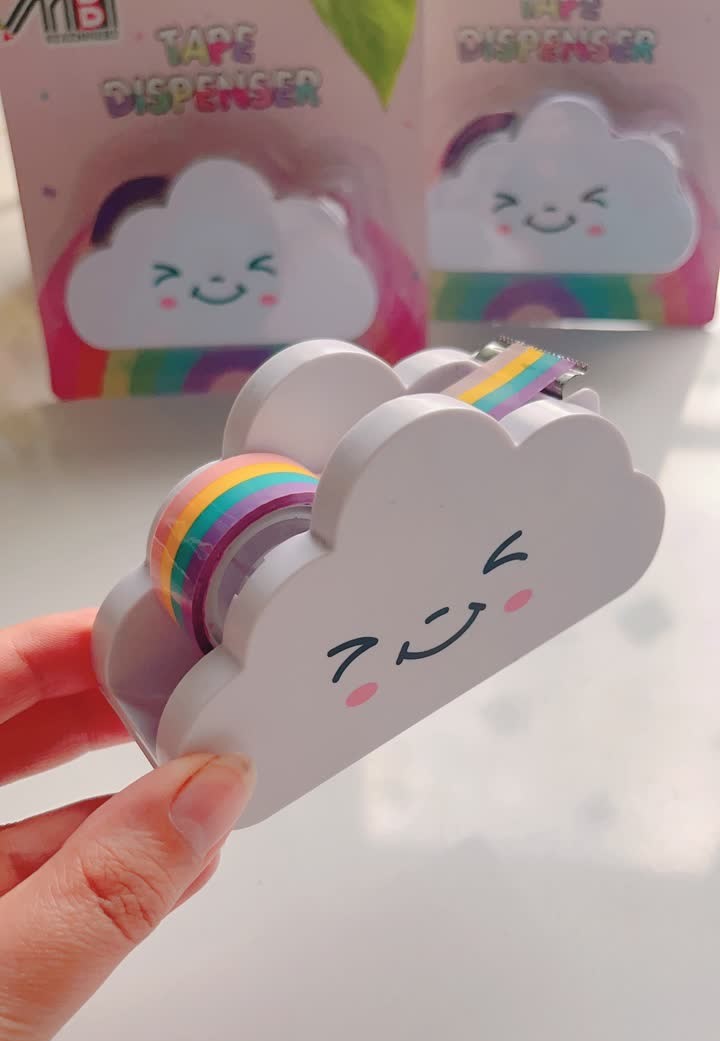 هم خیییلی کیوت و نازه و هم کیفیت خیلی خوبی داره " چسب رنگین کمونیش ۲۵ متره که بعد از تموم شدنش میتونید چسب نواری یا واشی جایگزین کنید" تیغه تیز و بدنه ی محکم و سبکی داره