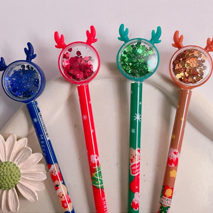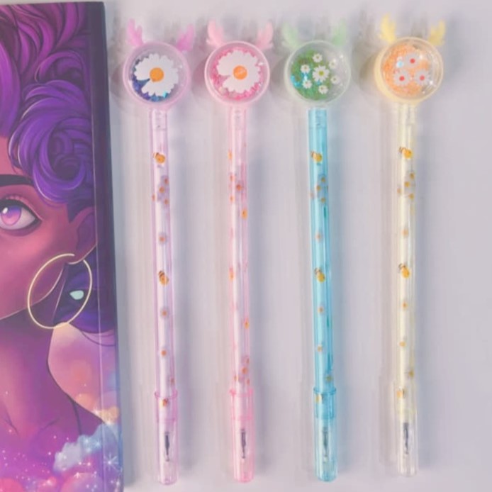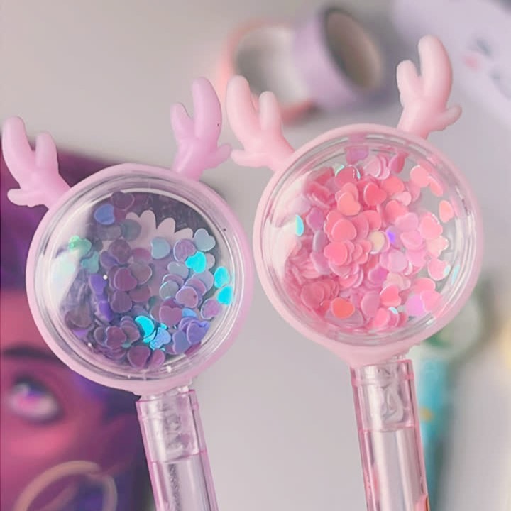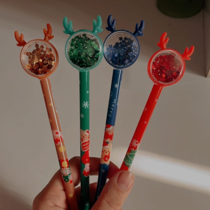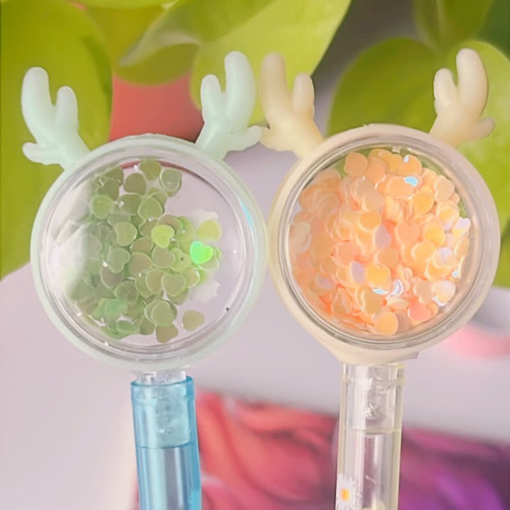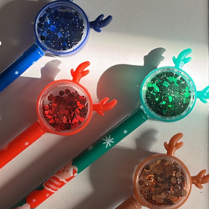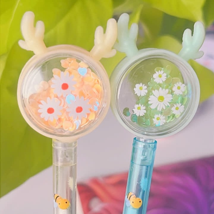 ✅خیلی کیوت و گوگولی هستن😍 ✅سر کریستالیشون پُر از پولکای ریز قلبی بامزه ست که با حرکت خودکار تکون میخوره شاخشون هم سیلیکونیه😉✅رنگ جوهرشون آبیه خیلی روون و با کیفیته😇👌✅و همین طور خیلی خوشدست و سبکه⚠️توجه کنید رنگ سرمه ای و قهوه ای طرح بدنه مدل کریسمسی ولی مدل بابونه طرح بدنه گل بابونه و زنبوره