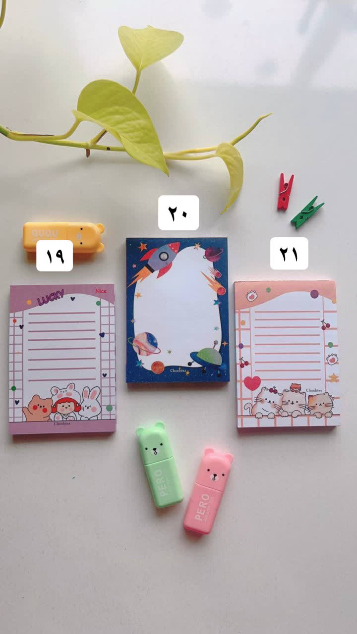 ازشون ميتونيد براى خلاصه نويسى و يادداشت بردارى درسها,نوشتن ليست كارهاى روزانه،نوشتن ليست خريد،نوشتن جملات انگيزشى و يا هر چيزى كه ميخوايد مدام جلوى چشمتون باشه استفاده كنيد😉؛ ۷۰ برگ هستن؛ ۲۰ تاطرح و رنگ قشنگ دارن🤩
