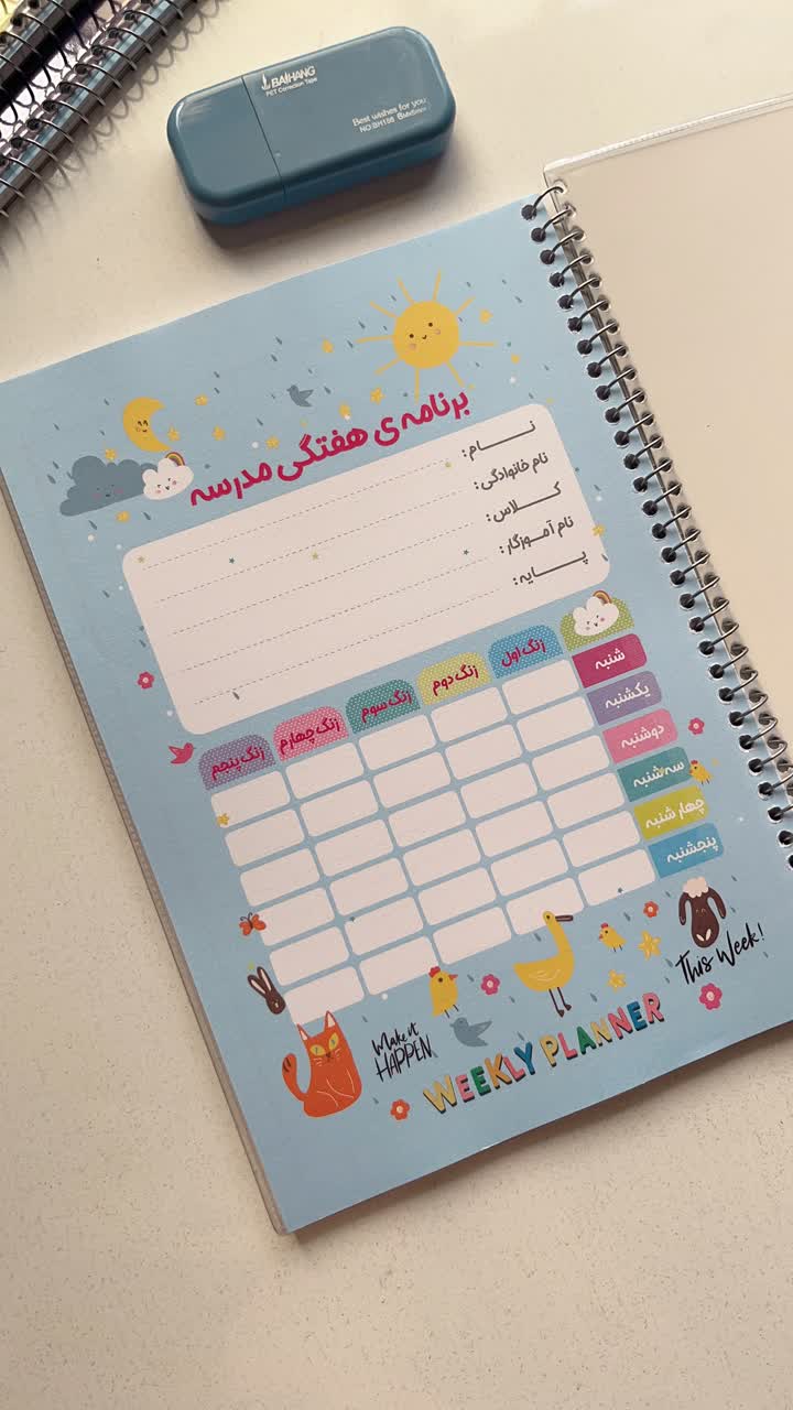 دفتر خاص و جذاب پسرونه 🤩؛ خیالت از جلدش راحت باشه نه تا میخوره نه پاره میشه نه کثیف 😎؛ با خطهای آبی و کادر قرمز ؛ صفحه اول همشون یه برنامه هفتگی دارن🤩