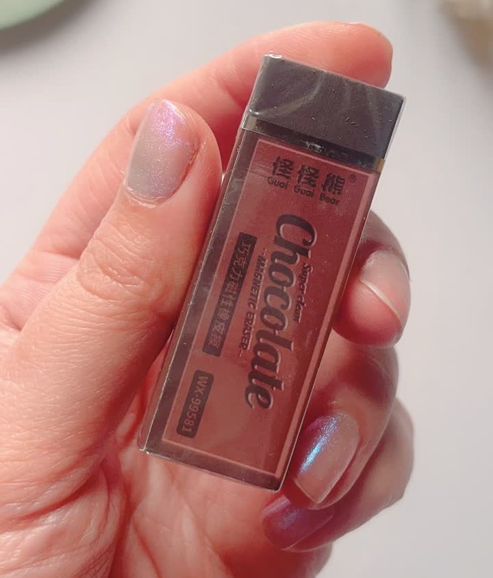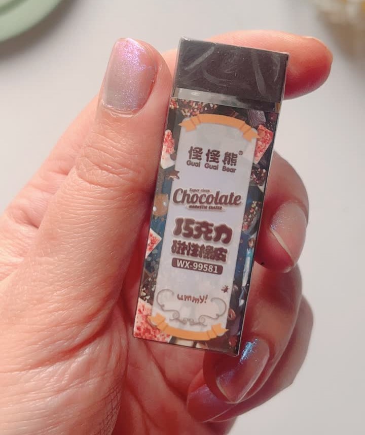 معطره و بوی شکلات میده ؛ سایز بزرگ و کیفیتش عالی؛ مگنتی هست و حاوی پودر آهنه، یعنی باقیمانده پاکن رو میتونید با آهنربا جمع کنی😉