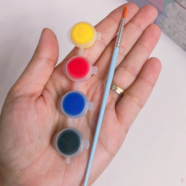 یک قلمو و گواش با ۴ رنگ اصلی و دارد