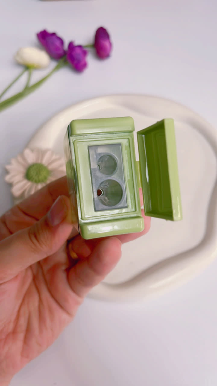 ✅مخزن داره و درش کاملا کیپ میشه ؛ دو تا تیغه هم داره با سایز کوچیک و بزرگ سایز تراش بزرگه